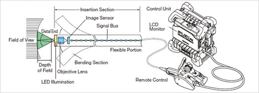 دارند، از نظر قابلیت ها، کیفیت و عملکرد محصولات متفاوتی هستند . در حالی که بورسکوپهای ساده از لنزهای نوری برای نمایش تصویر از نوک (یا انتهای دور) به چشمی بیننده استفاده میکنند، ویدئوسکوپها از یک حسگر تصویر برای ارسال تصویر به صفحه ویدیو استفاده میکنند. توجه داشته باشید که این بدان معنا نیست که یک ویدئوسکوپ فاقد اپتیک دیگر است. همانطور که در تصویر زیر مشاهده می شود، ویدئوسکوپ های معمولی دارای یک لنز نوری، یک حسگر تصویر و نوعی نور برای گرفتن تصویر هستند.